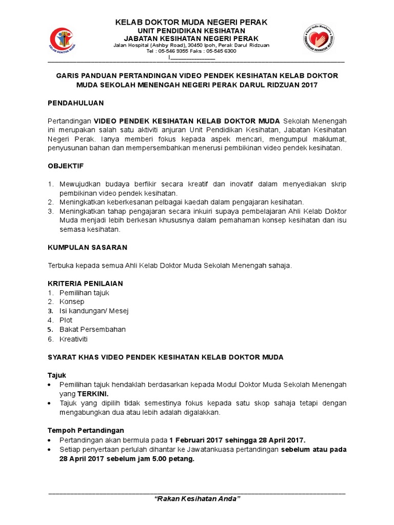 Kertas Kerja Pertandingan Video Pendek Kesihatan 2017 Pdf